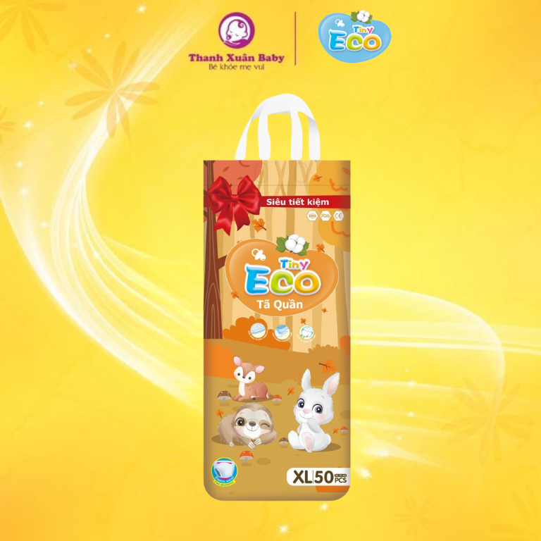 Tã bỉm Tiny Eco XL-50 quần – Thấm hút 800ml, cho bé thoải mái vận động cả ngà
