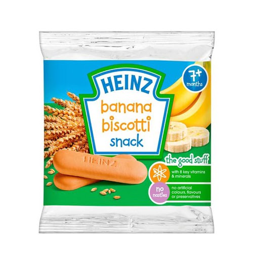 • Bánh Ăn Dặm Heinz: Bổ sung 8 nhóm dinh dưỡng cần thiết, ngoài các loại thực phẩm và sữa bé ăn hàng ngày. Bánh quy thơm mềm, dễ tan trong miệng với các vị chuối, táo, socola, lúa mạch, và dâu. Sản phẩm được phân chia theo giai đoạn phát triển của bé từ 4, 6, 7 và 10 tháng tuổi.